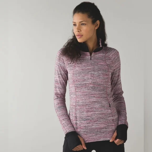 Lululemon Rundleful half zip. In excellent like new condition. Size 8. Lulu color Space Dye Camo Berry Rumble Multi/Black. Has one pocket on the front