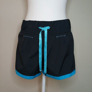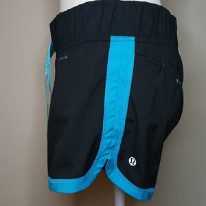 Lululemon Running Shorts With Liner Black With Turquoise Trim Size 6