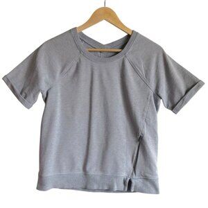 Lululemon French Terry top, silver grey sweatshirt, Lululemon Scene Shirt, cozy short sleeve top, lululemon relaxed fit size 4