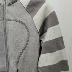 Lululemon Scuba Hooded Sweater Special Edition LOVE Gray Striped Fleece Zip Sz 4