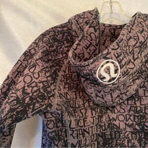 Lululemon Scuba Hoodie II Ladies 8 Brown with Black Graffiti Text