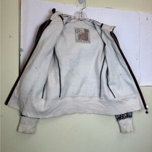Jacket is in decent used condition. Obvious signs of wear. No rips or damage. Due to light colour, some darkening on sleeve cuffs from wear. See photos.