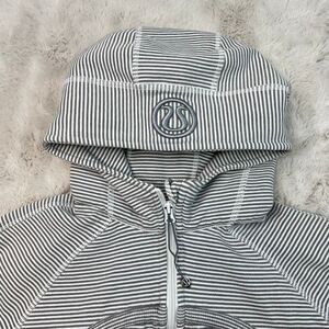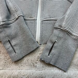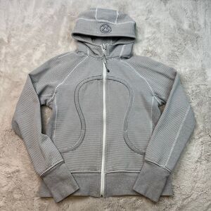 Lululemon Scuba Hoodie Womens Size 12 Grey White Stripe Full Zip Sweatshirt Y2K