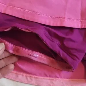 skort with rubberized under shorts. zip in back for cards or keys. never worn