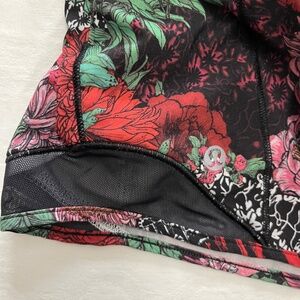 Lululemon Shorts Women' 4 Tall Red Green Floral Hotty Hot Running Gym Lined Shor