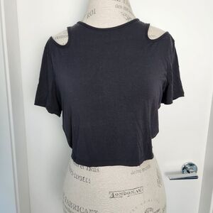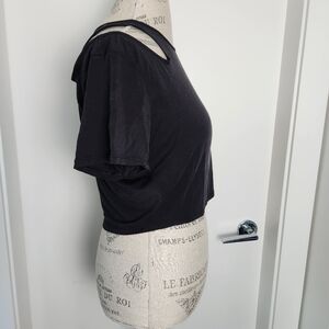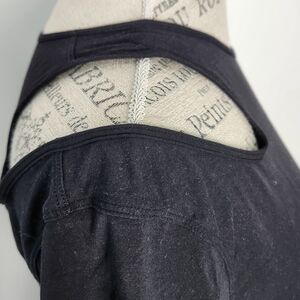 Soft Black Cropped Crewneck Yoga Tshirt with Cutout shoulders, by Lululemon Athletica.