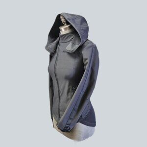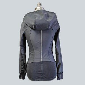 Discover the perfect blend of comfort and style with Lululemon's Soft Shell Jacket. This exceptional jacket, featuring a removable hood, front upper left pocket, and two bottom hand pockets, is designed for practicality and elegance. The half glove thumb opening and additional stretch knit drop bum (8-inch drop) ensure both warmth and flexibility. For enhanced visibility and safety, it has a reflective insert in the middle back.