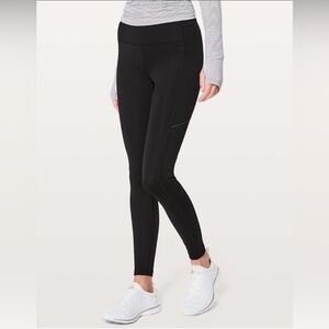 Lululemon Sole Training Crop leggings in Daisy Dust Alpine White Black and Black colorway.