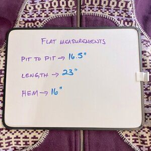 Great used condition. Minimal signs of wear shown in pics (minor pilling in raw edges). No holes or stains. No pulls. Rich dark purple colour. Size tag still intact. Size 4/XS. Measurements in pics.