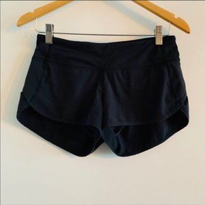 Copied from lululemon website - Lightweight, Swift Fabric Four-way stretch Sweat-wicking Lightweight Liner is lightweight, sweat-wicking, and quick-drying with added Lycra® fibre for stretch and shape retention Product Features Secure back pocket Continuous drawcord is easy to cinch and won't get lost in the wash First photo is for stock purposes only - I believe these are the speed up shorts but see photos for exact shorts