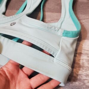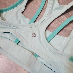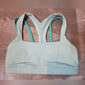 Lululemon Splendour Bra. Light and dark aqua (blue green) color. Size 4. Stain.