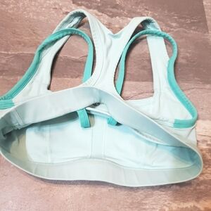 Lululemon Splendour Bra. Light and dark aqua (blue green) color. Size 4. Stain on the outer lower band as seen on pictures. No rip, no hole. Non smoking house.