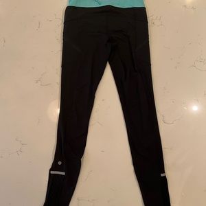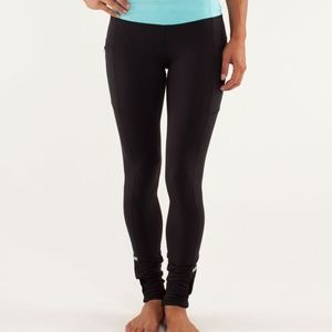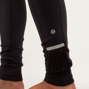 Start the new year off with a great pair of running leggings, or use them for everyday use. The tights feature a reflective stripe on each ankle along with pleated detailing. These are full-length leggings. Have zippered pockets on the back and each outer thigh with a lululemon logo zipper pull. They also feature an adjustable waistband drawstring.