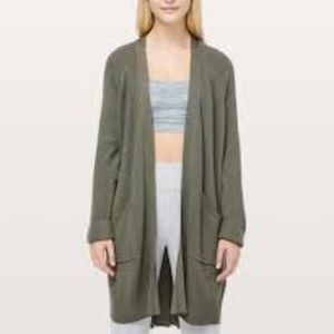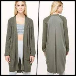 Keep cool yet covered in this extra-long sweater wrap with a lightweight, flowy back so you can feel cozy and comfy post sweat