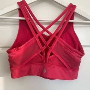 Experience unparalleled support and style with the Lululemon Pink Strappy Sports Bra. This vibrant piece features a unique crisscross strap design that not only enhances its aesthetic appeal but also provides excellent support. Made from a stretchy, athletic fabric, it ensures comfort and flexibility for any workout.