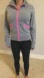 Stretchy cotton fabric, heather grey with pink zipper accents.