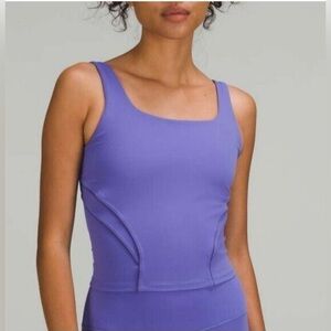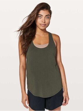 We designed this sweat-wicking, slim-fitting tank so when our workout is kicking our butts, we can kick back. Wide straps cross comfortably on our back and the medium-support shelf bra keeps our ladies locked from burpees to box jumps. Nope, we're not backing down.