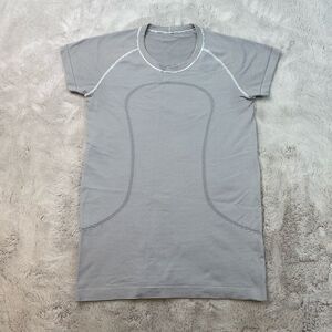 Lululemon Striped Swiftly Tech White Top TShirt Size 8 Running Sports Stretch