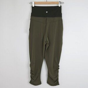 Lululemon Sunset Salutation Crop Pant Fatigue Green Black Relaxed Stretch Size 4