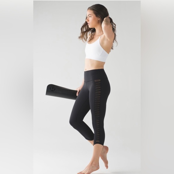 Lululemon Sunshine Salutation crops size 6 side mesh fabric panels
