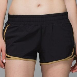 Lululemon Super Squad shorts. Black and gold. Size 6. Built in liner.