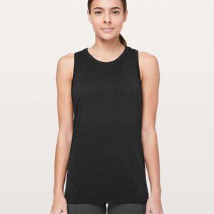 Great condition, Lululemon Swiftly Breeze Tank in Black, size M or L not sure - please verify with the dimensions in pics, from pet and smoke-free home
