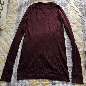 Lululemon Swiftly Tech Long Sleeve Crew Plum / Black Athletic T-shirt Thumb Holes