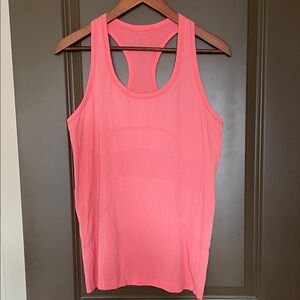 Stay stylish and comfortable with this vibrant peach racerback tank top. Perfect for workouts or casual wear.