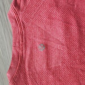 Lululemon Athletica Swiftly Tech Shortsleeve Shirt. red in color. no size dot or size listed on the inner hem. measurements show its about a large, compare your measurements before purchase to ensure best fit.