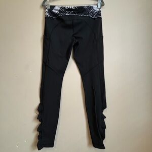 Lululemon Sz 8 Speed Run Reflective Pocket Ruffle Leggings Snake Print Black