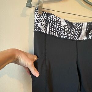 Lululemon Sz 8 Speed Run Reflective Pocket Ruffle Ankle Leggings Snake Print Black