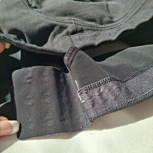 High support sports bra with moisture wicking and 4 way stretch. Padded, adjustable and crossable straps. Hook and eye closure on band.