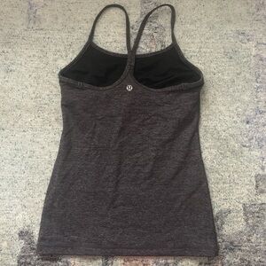 Black and gray Lululemon athletic tank, gently worn but in excellent condition. No size tag but I’d say fits size s / 4