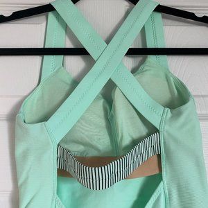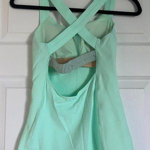 Lululemon exercise tank. Criss cross straps at back. Built in padding. Mint color. Excellent condition, only worn a few times.