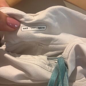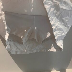 This is a white tennis skirt with a stretchy drawstring for the perfect fit.