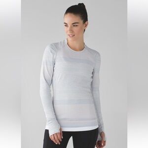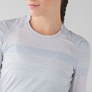 Lululemon Think Fast Long Sleeve in Om Stripe Heathered Silver Spoon Multi