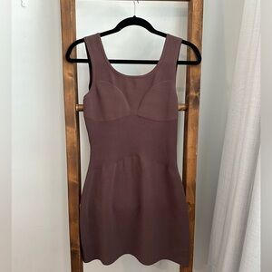 Held in, not held back. This super-stretchy knit dress uses body-mapped construction to hug your body and move with you in complete comfort.