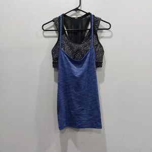 Lululemon Tough It Out Tank Heathered Sapphire Blue Butterfly Texture Black