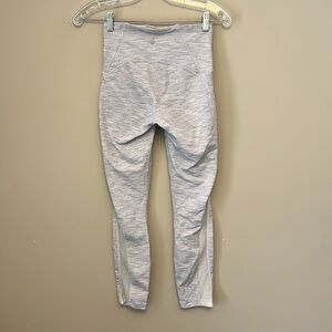 Comfortable gray high-waisted leggings. Perfect for workouts or casual wear.