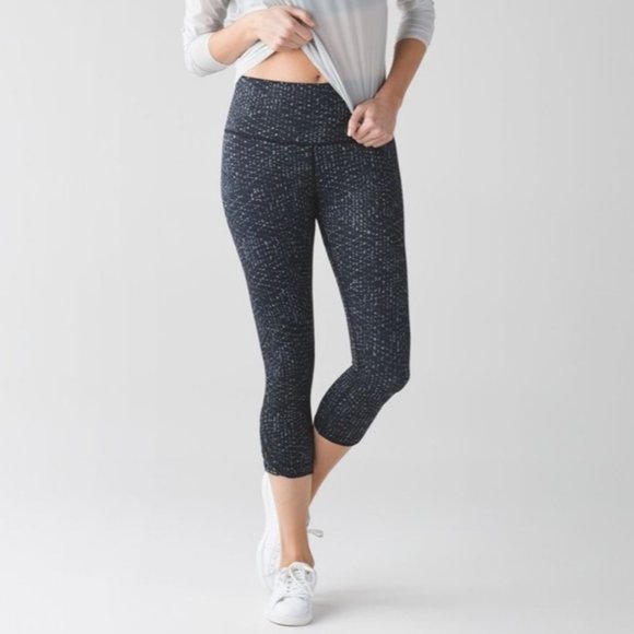 Lululemon True Self Crop II Samba Snake Battleship Black Leggings, Size 6