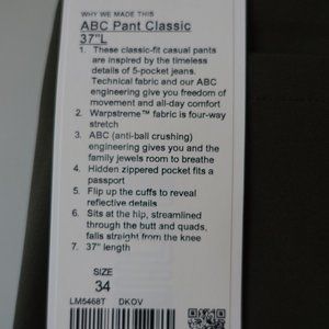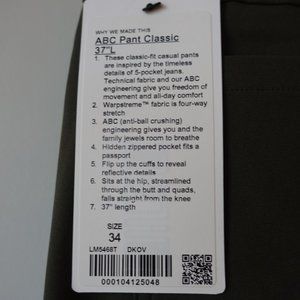 Lululemon Warpstreme ABC Pant Classic 37"L inseam Tall Size 34 Dark Olive