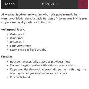 Lululemon Waterproof Hiking Poncho Size 2 (Oversized) NWOT