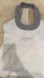 Elegant white halter top featuring a stylish gray trim. Perfect for any workout or Athletic events.