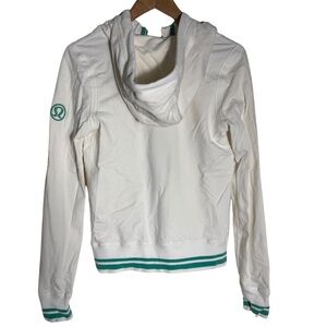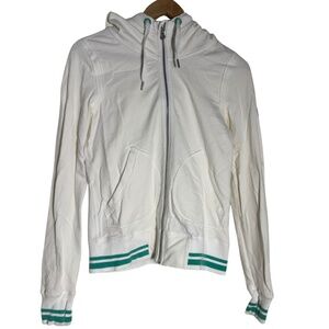 Lululemon White Zip-Up Women’s Scuba Hoodie – Retro Striped Ribbed Hem – Size 6