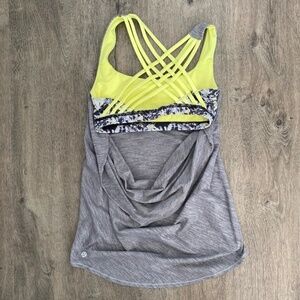Lululemon Wild Tank Size 4 Heathered Slate/Crosscourt Petal Black/Clarity Yellow