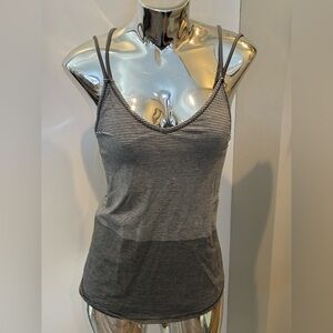 Lululemon Wild Tank in Heathered Wine Berry / Mini Pop Stripe Black Mink Berry and Women's Size 2. Style W1I80S. Made of Luxtreme and Luon fabric. Anti-stink two-in-one tank with a draped, open back for ventilation and a built-in strappy bra for comfortable support. Made with Seriously Light Luon fabric that is the lightest version of lulu's soft, sweat-wicking, four-way stretch Luon fabric. Four way stretch. Great pre-owned condition. Removable cups included. Please review all photos.