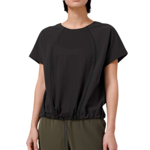 Lululemon Womens 6 Tied to Motion Short Sleeve Black Shirt