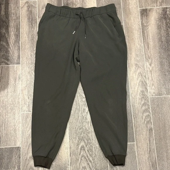 Comfortable olive green jogger pants with elastic waist and drawstring. Soft, breathable fabric for everyday wear. Tapered legs with ribbed cuffs for a modern fit. Versatile style that pairs easily with tees and sweaters.