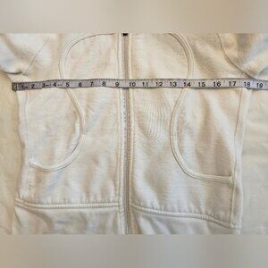 Lululemon Women's Scuba Hoodie Jacket. White. Measurements in pictures