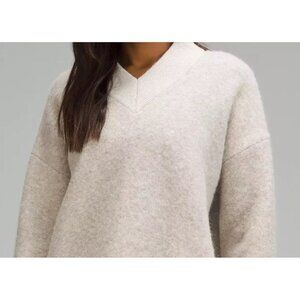 Lululemon Women's Small Heathered Light Grey Alpaca Wool Blend V-Neck Sweater